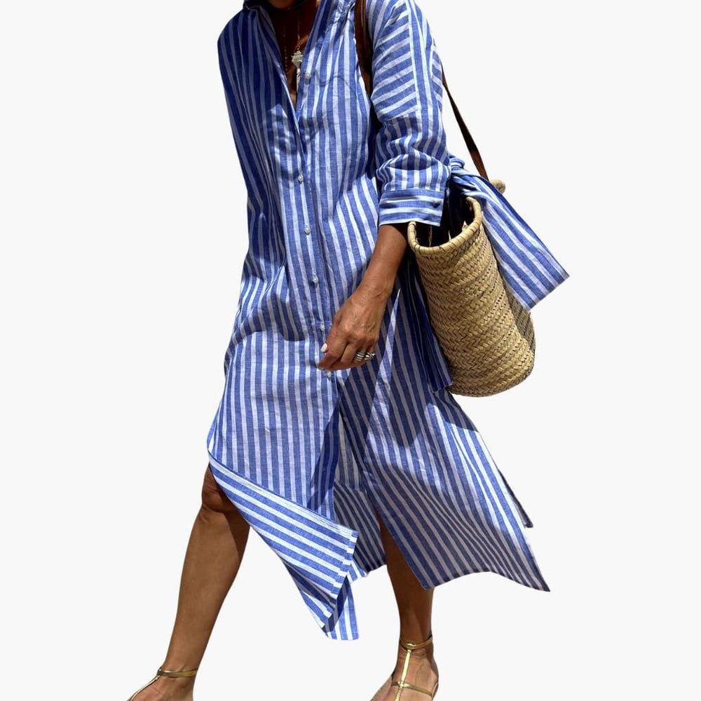 Gestreiftes A-Linienkleid mit Taschen für Damen