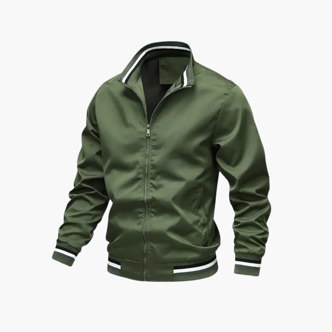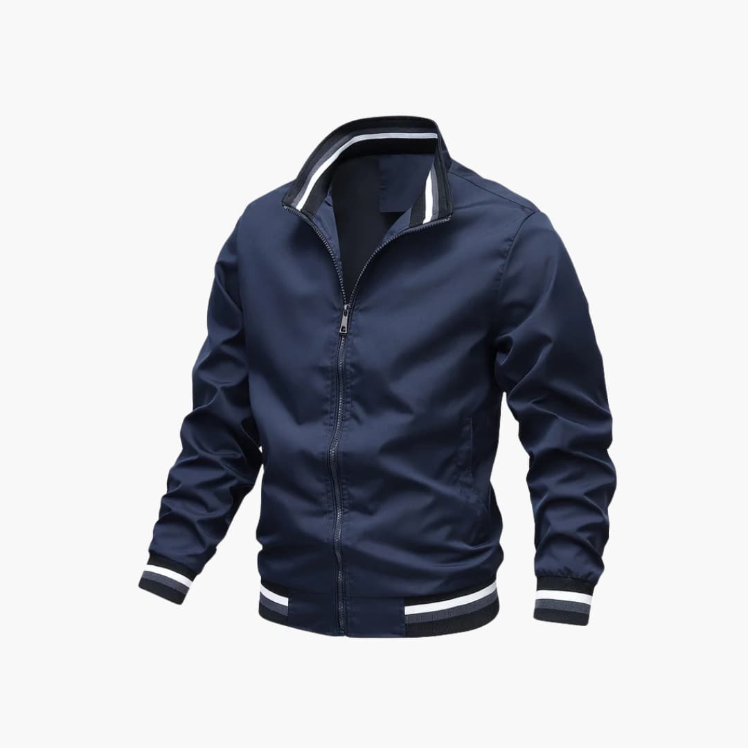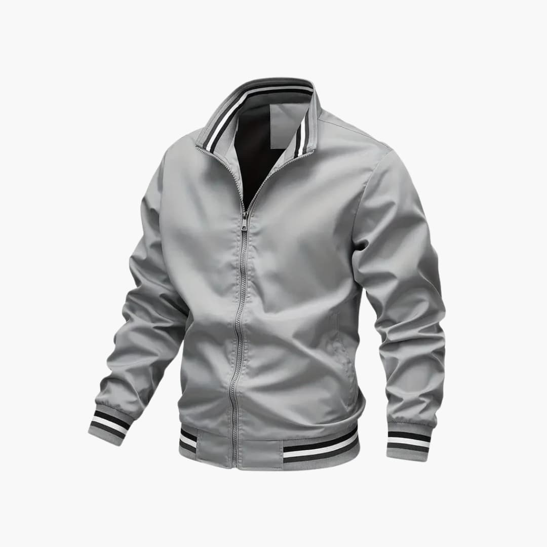 Bomberjacke für Herren mit gestreiften Rippdetails und Reißverschluss