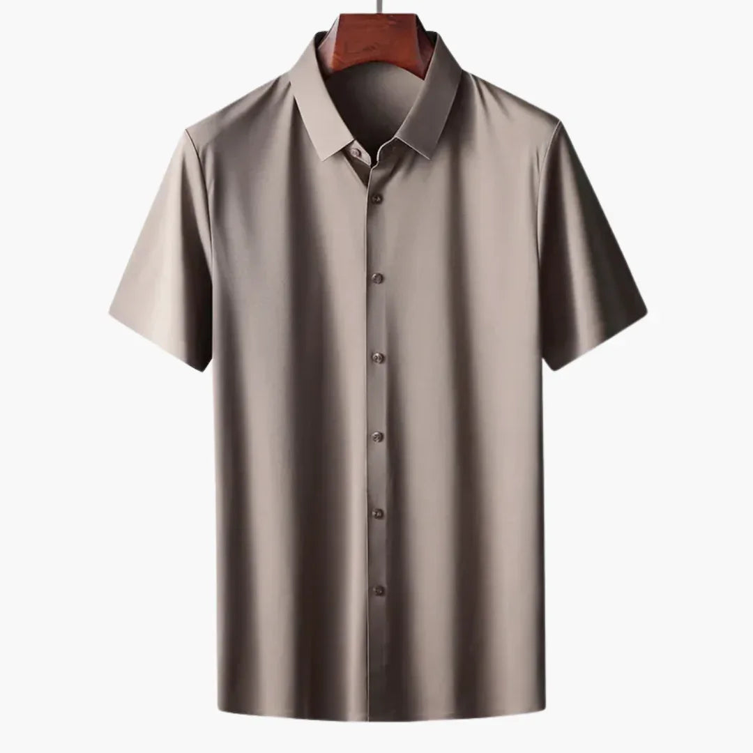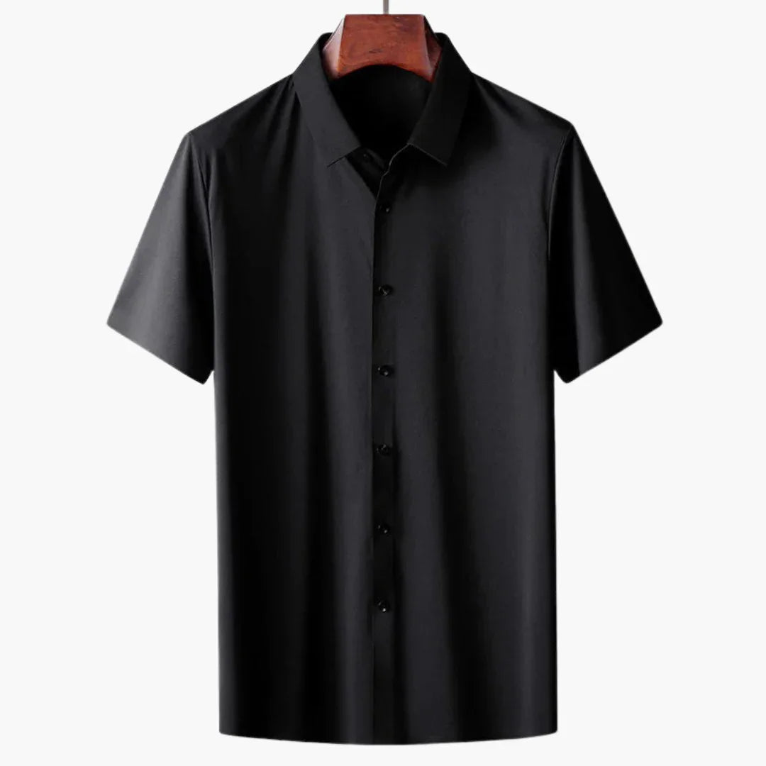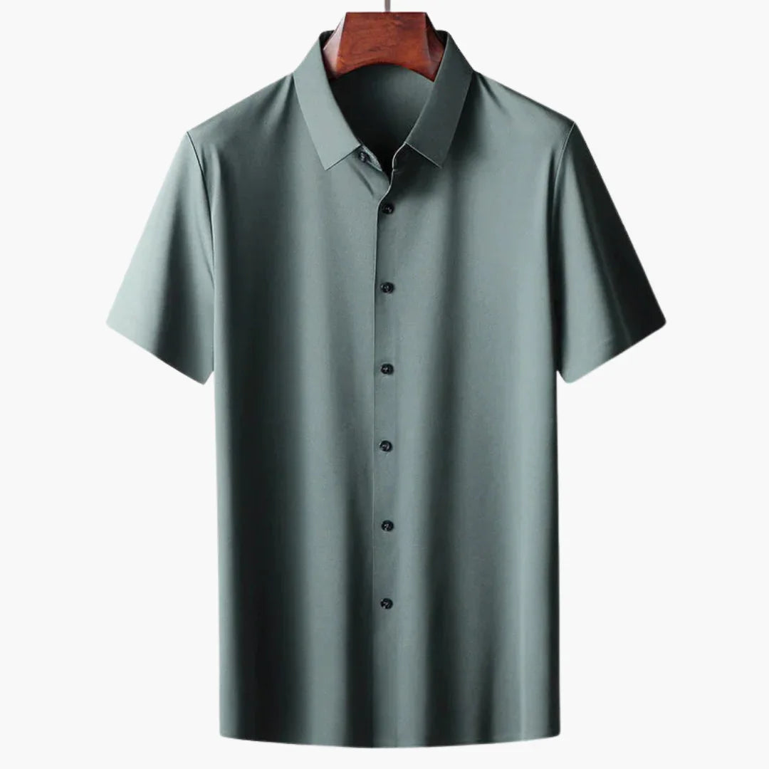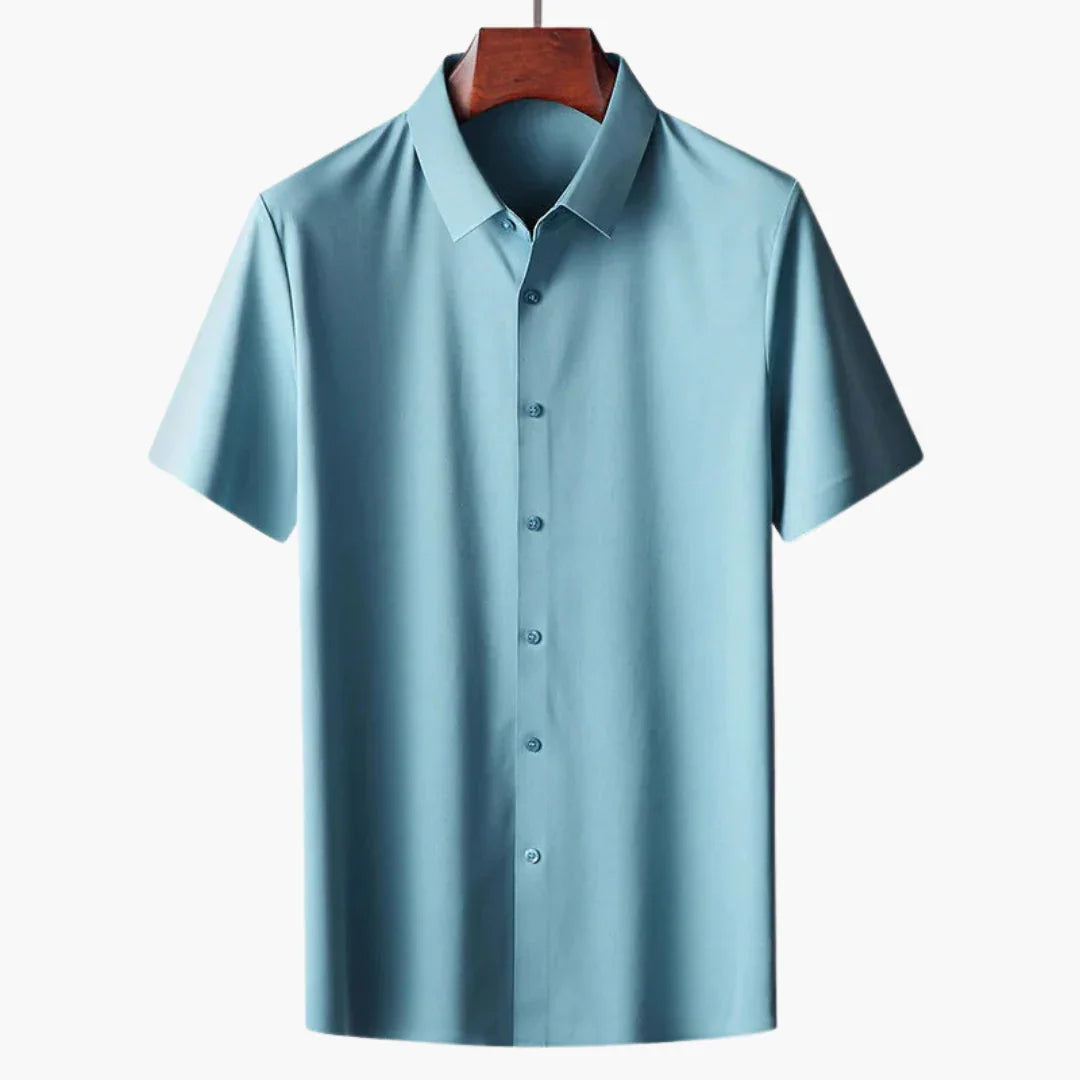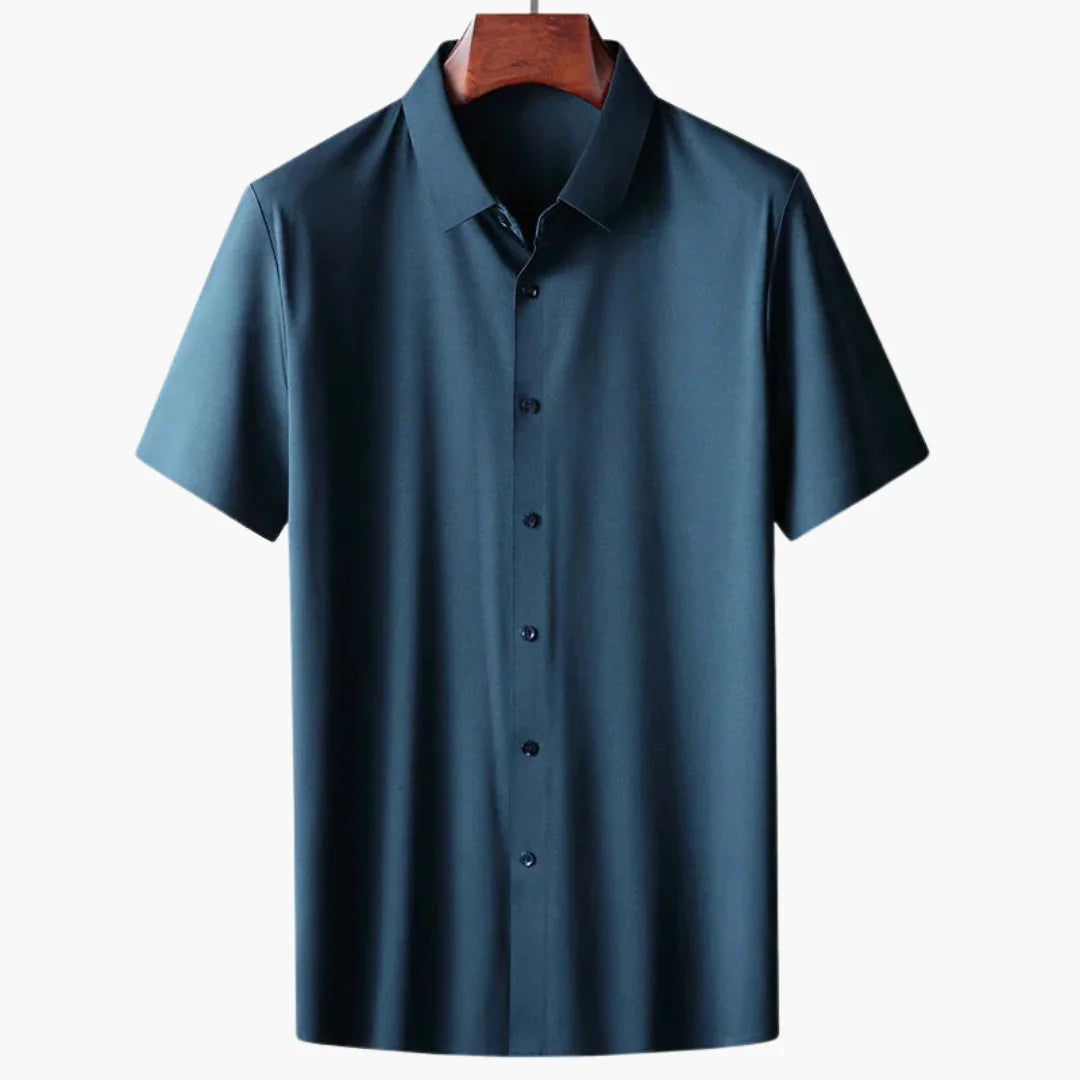 Dieses kurzärmelige Herrenhemd mit Knopfleiste präsentiert sich als schlichtes Oberteil für sommerliche Outfits. Die Kombination aus matter Oberfläche, gerader Passform und klassischem Kragen verleiht dem Modell eine klare Linie. Es eignet sich für verschiedene Alltagskombinationen an warmen Tagen und behält dabei seine definierte Silhouette.
