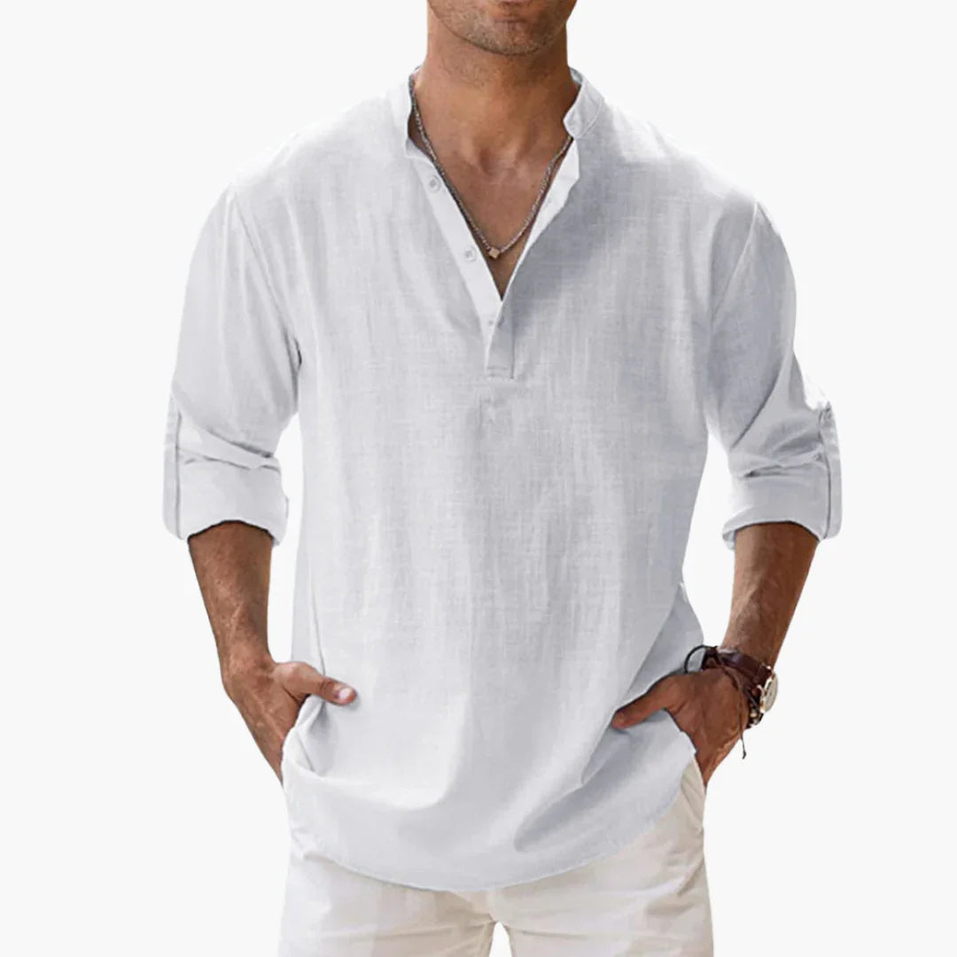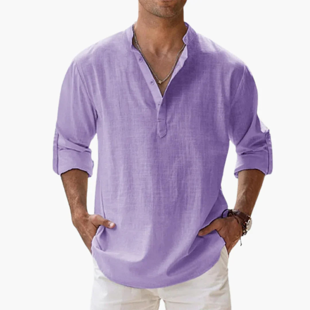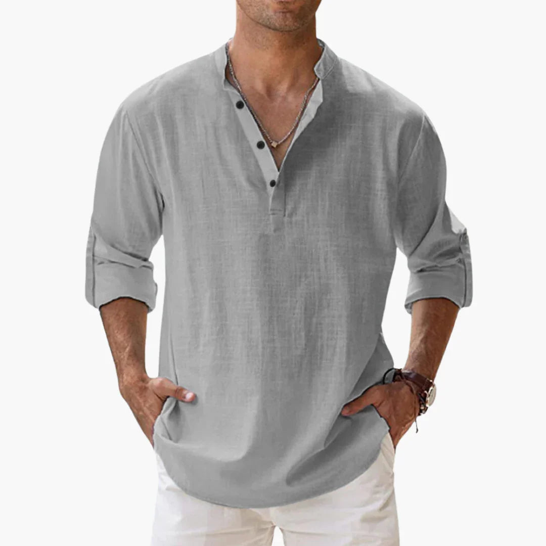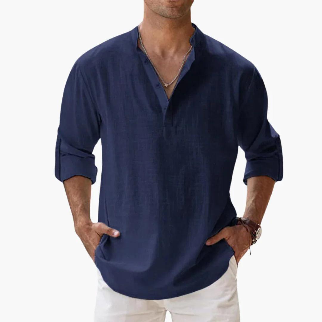 Dieses Herrenhemd mit Mischgewebe ist ein wandelbares Kleidungsstück für warme Tage. Mit weiter Passform und strukturierter Oberfläche lässt es sich für Büro, Freizeit oder sommerliche Anlässe verwenden. Durch das Material mit feiner Textur und klassischem Schnitt ist es auf verschiedene Situationen in der warmen Jahreszeit abgestimmt.