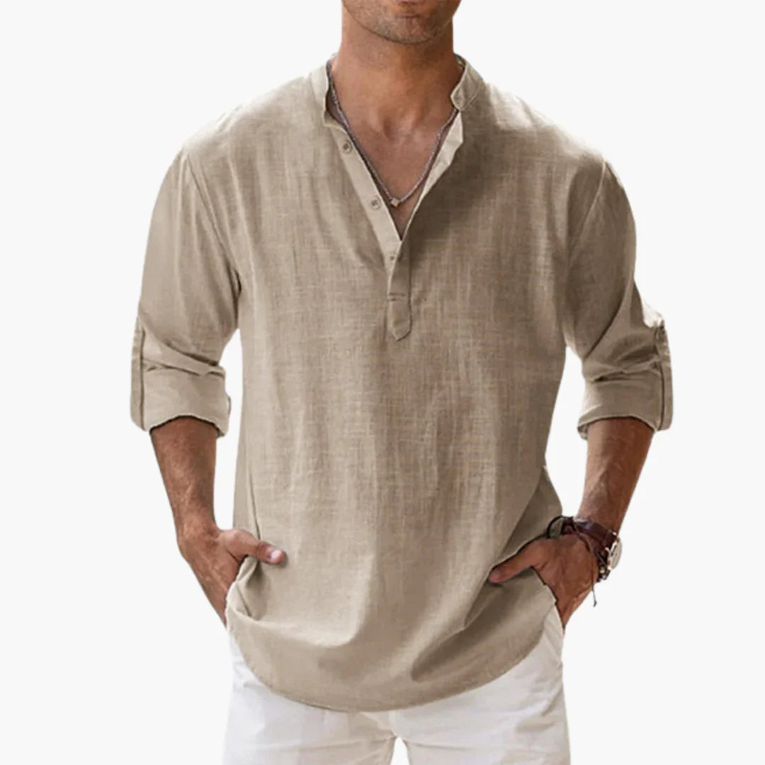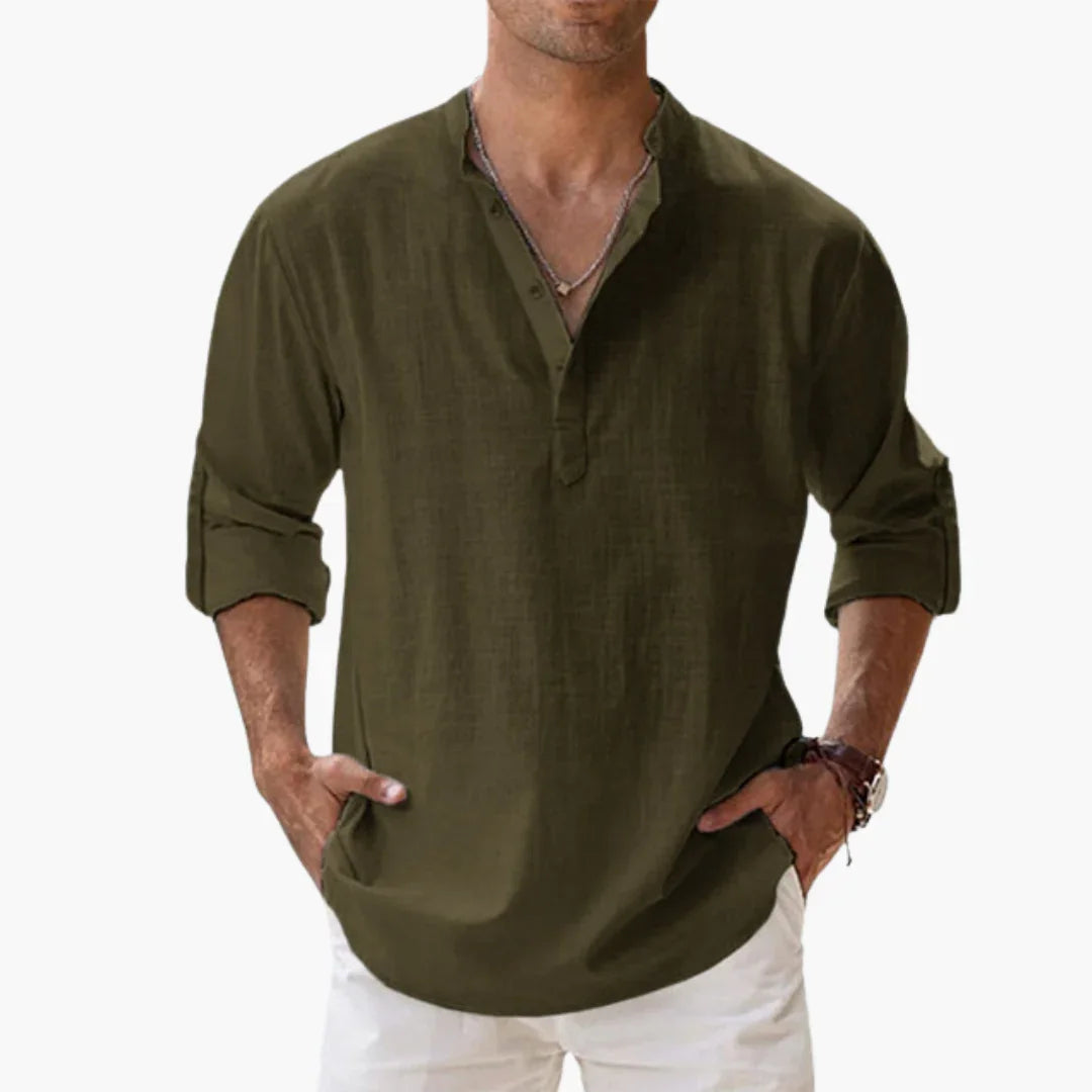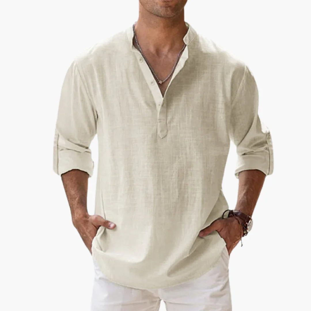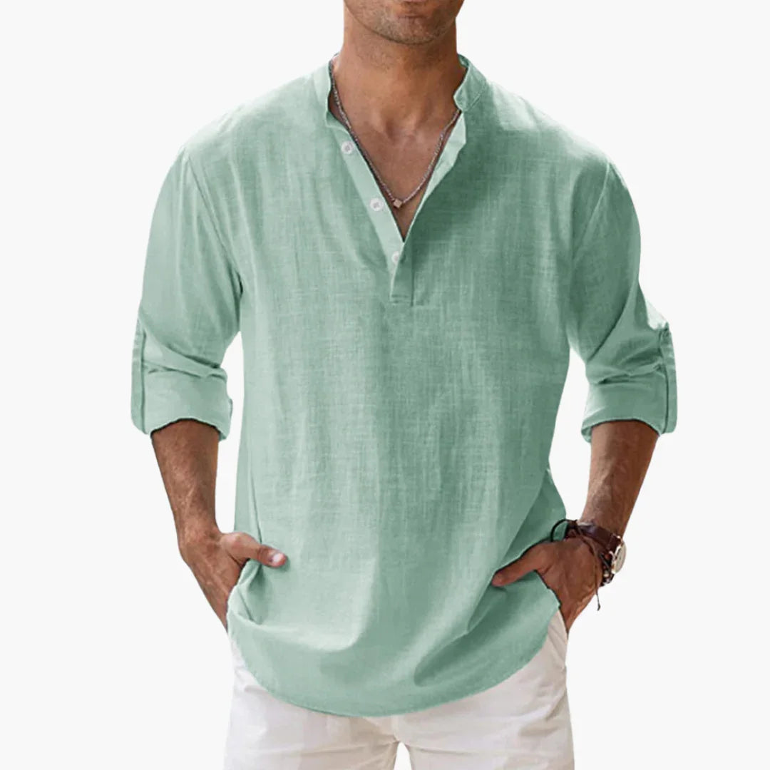 Dieses Herrenhemd mit Mischgewebe ist ein wandelbares Kleidungsstück für warme Tage. Mit weiter Passform und strukturierter Oberfläche lässt es sich für Büro, Freizeit oder sommerliche Anlässe verwenden. Durch das Material mit feiner Textur und klassischem Schnitt ist es auf verschiedene Situationen in der warmen Jahreszeit abgestimmt.