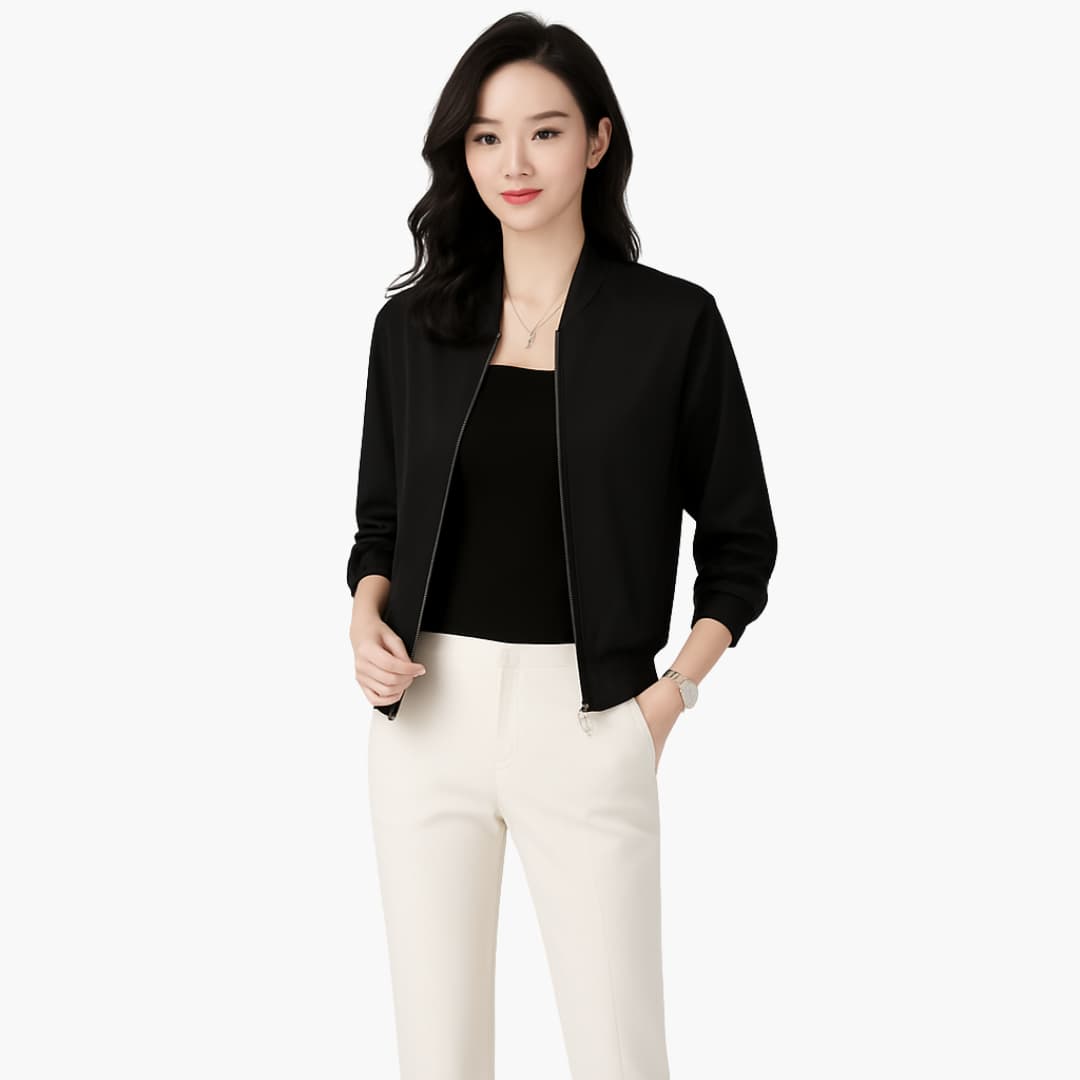 Damen-Bomberjacke mit Reißverschluss und geripptem Saum