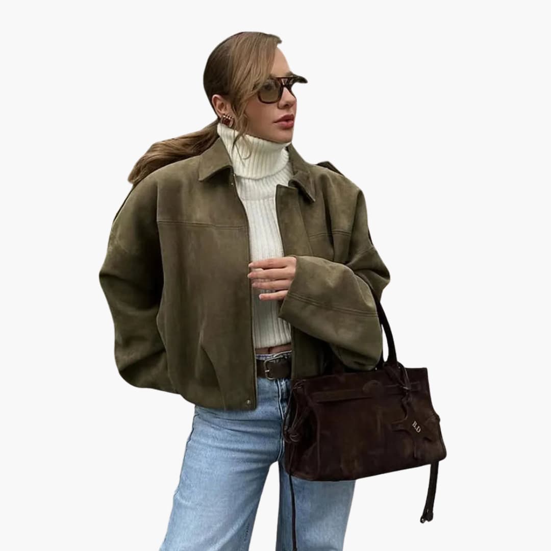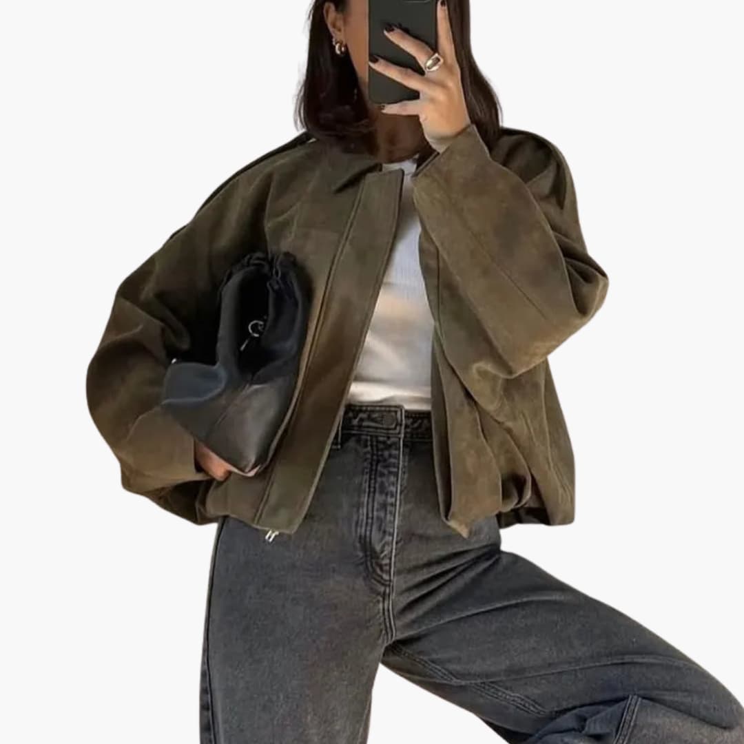 Locker geschnittene Damen-Übergangsjacke mit Hemdkragen und verdecktem Reißverschluss