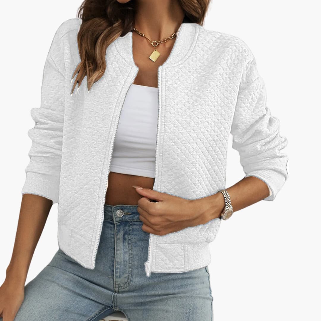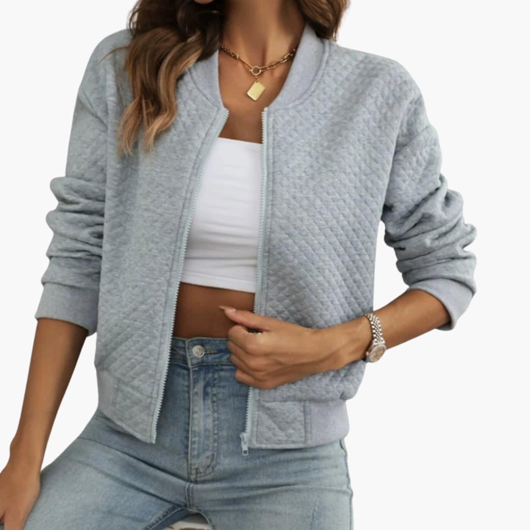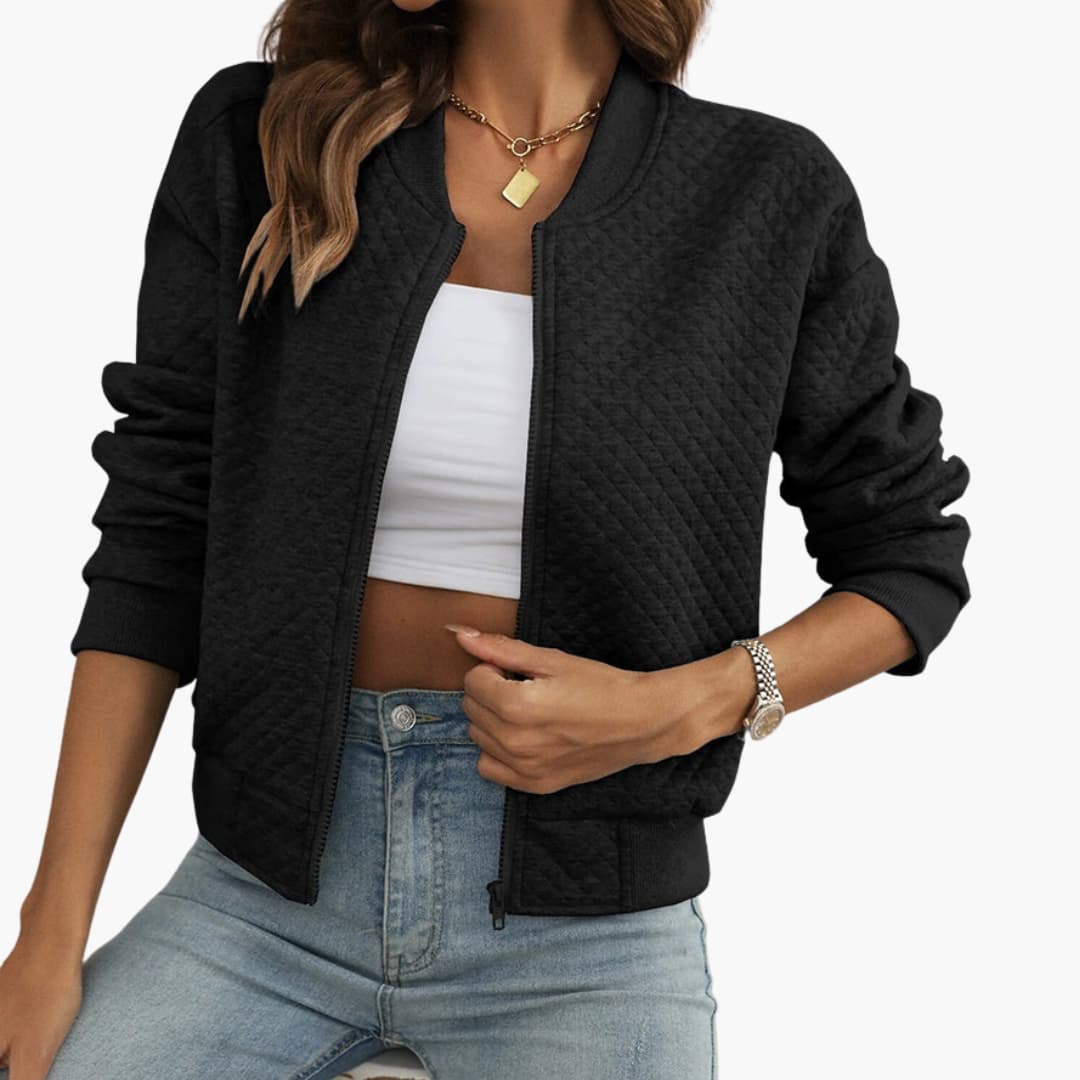 Damenjacke mit durchgehendem Reißverschluss und geripptem Saum