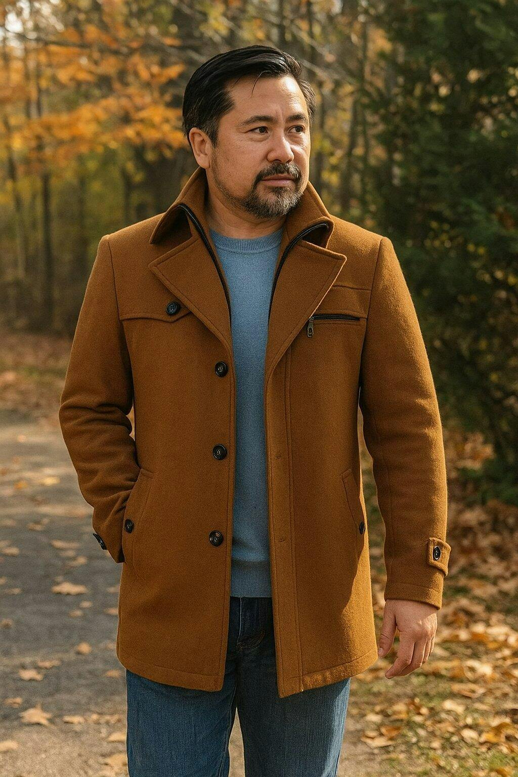 Dieser Herrenmantel verfügt über eine strukturierte Silhouette mit klassischem Erscheinungsbild und ist für vielseitige Einsatzmöglichkeiten in unterschiedlichen Umgebungen konzipiert. Seine geformte Form und das neutrale Finish machen ihn geeignet für die Kombination mit sowohl formeller als auch legerer Kleidung. Für kühlere Jahreszeiten entworfen, bietet die Materialoberfläche umfassenden Schutz ohne unnötiges Volumen.