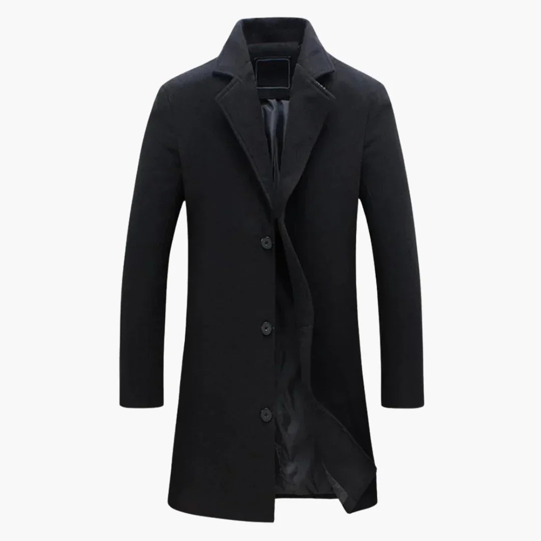 Dieser lange Herrenmantel zeichnet sich durch eine gerade, verlängerte Form mit einer strukturierten Optik aus, die sich ideal für kühleres Wetter eignet. Er bietet einen ausgewogenen Stil, der sowohl zu formeller als auch zu legerer Kleidung passt. Mit einer taillierten Passform entworfen, verfügt er über ein gefüttertes Innenleben und eine äußere Oberfläche, die für den saisonalen Gebrauch angepasst ist.