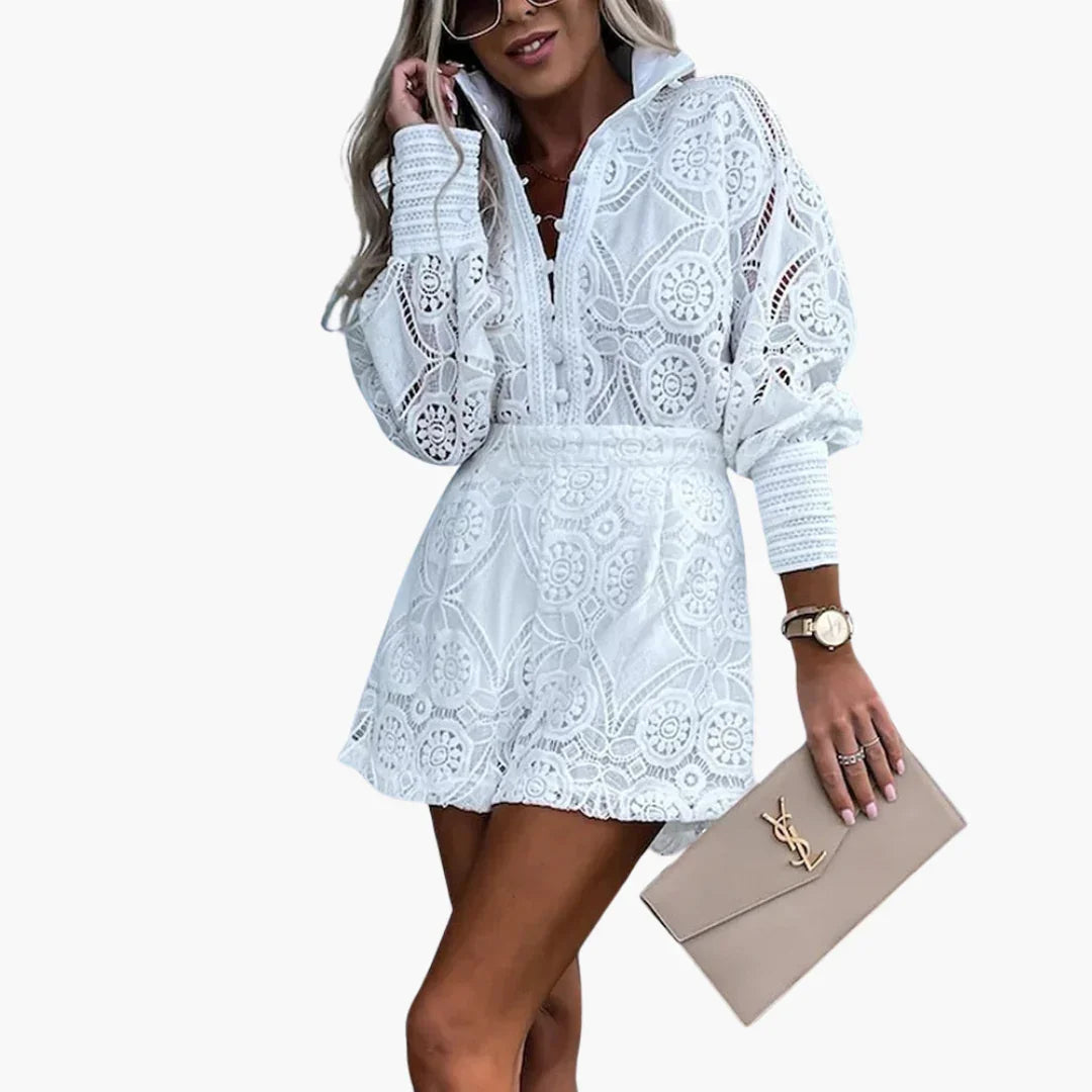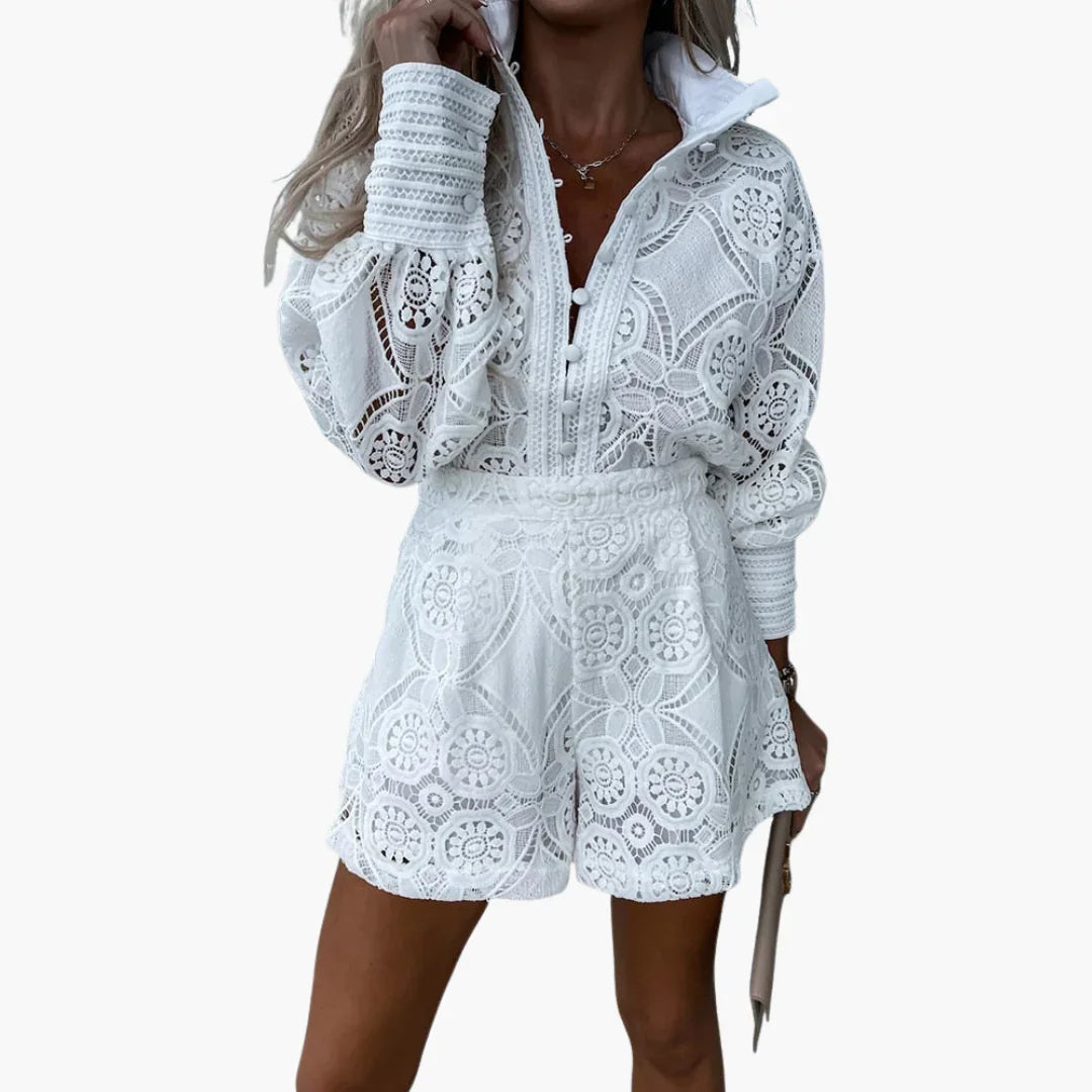 Zweiteiliges Set mit Spitzenstruktur für warme Tage
