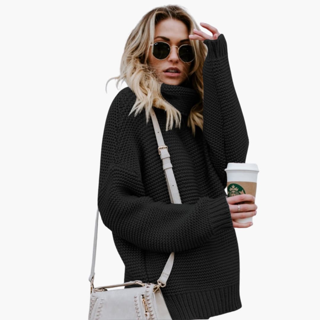 Grobstrick Damenpullover mit hohem Rollkragen und gerippten Abschlüssen