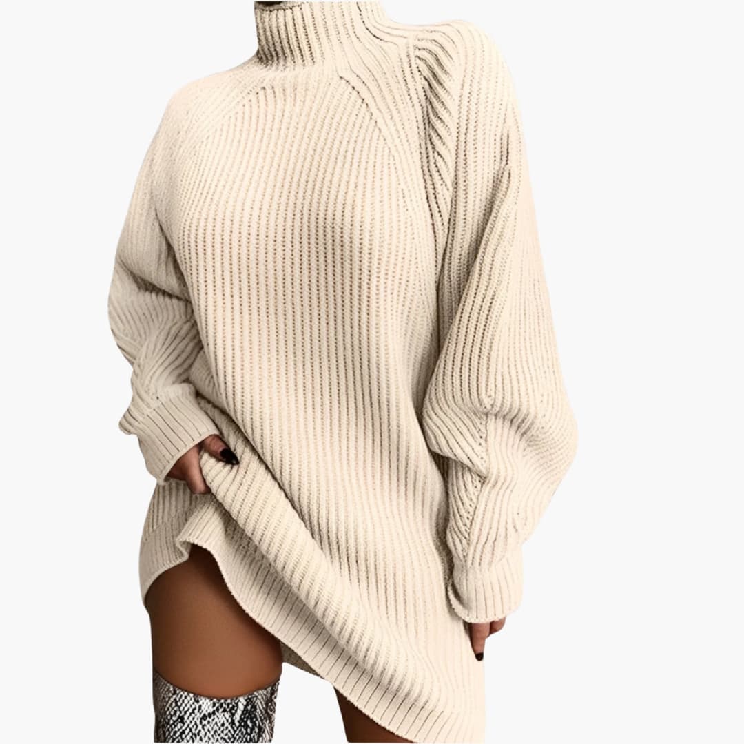 Übergroßer Damenpullover mit geripptem Rollkragen und langen Ärmeln.