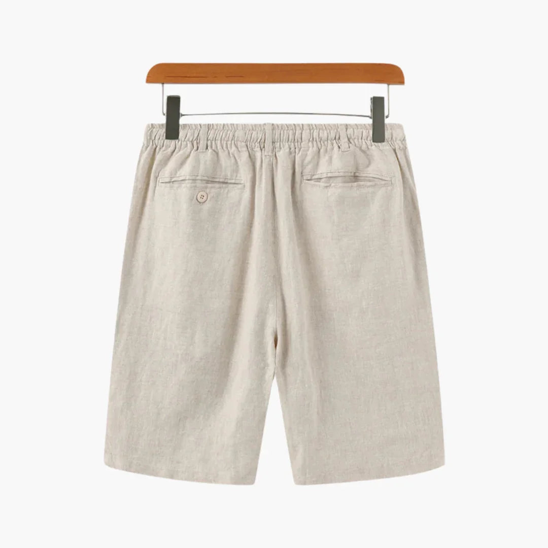 Diese Herren-Shorts in klassischer Länge kombinieren eine klare Linienführung mit einem elastischen Bund für sicheren Sitz. Gefertigt aus einem fein strukturierten Gewebe, eignen sie sich für verschiedenste sommerliche Anlässe und präsentieren eine schlichte, zeitlose Optik.