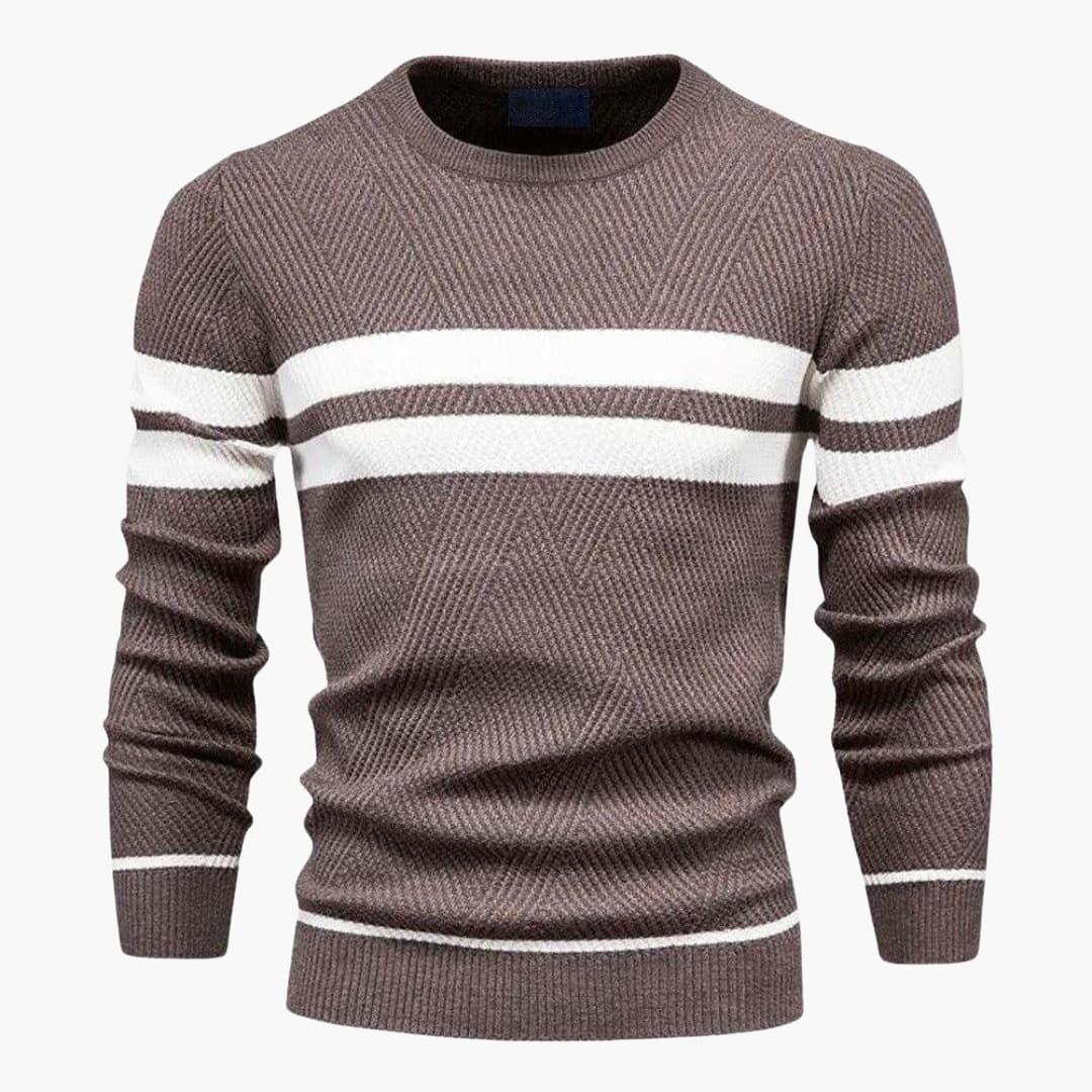 Dieser gestreifte Pullover für Herren ist ein vielseitiges Kleidungsstück, das durch sein markantes Streifenmuster auffällt. Er eignet sich für Männer, die Wert auf eine klare Form und vielseitige Kombinationsmöglichkeiten legen. Das strukturierte Material sorgt für eine angenehme Passform und macht den Pullover passend für den täglichen Einsatz.