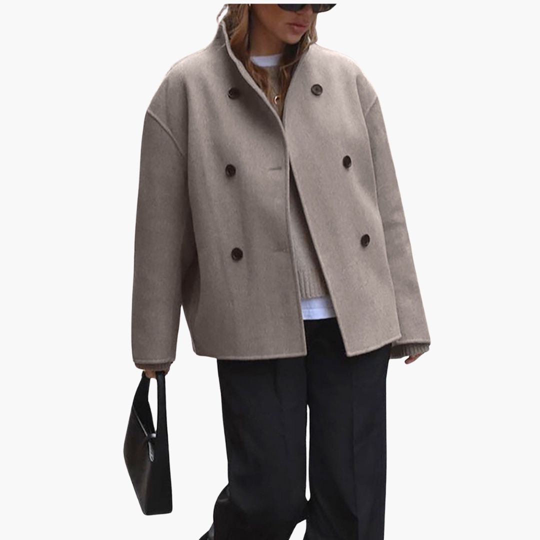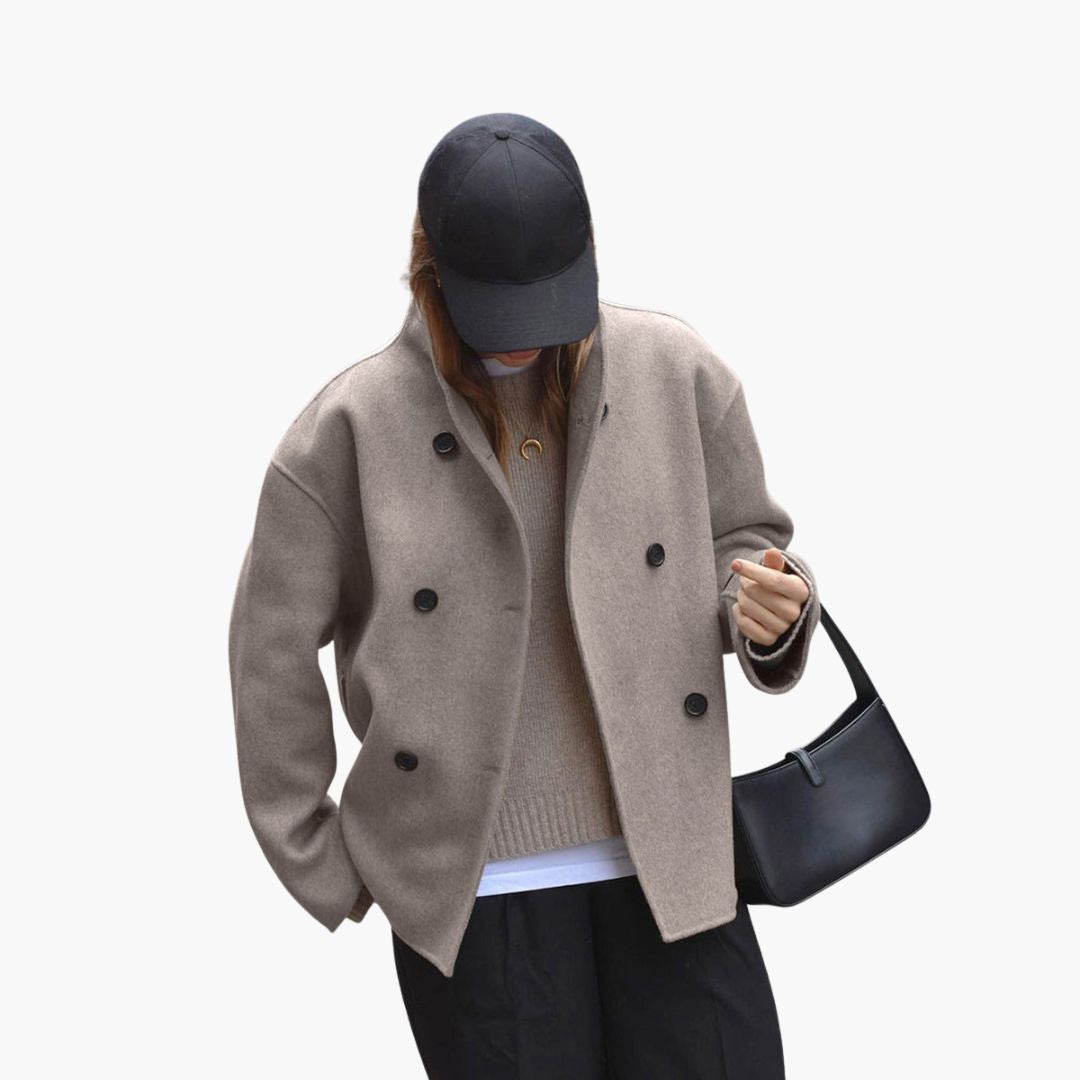 Kurzer Damenmantel mit Stehkragen und Knopfverschluss