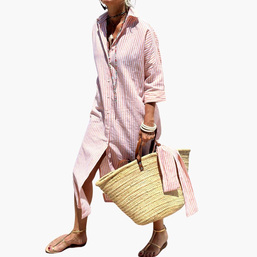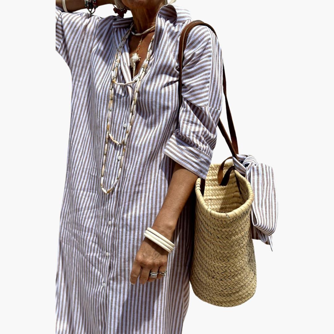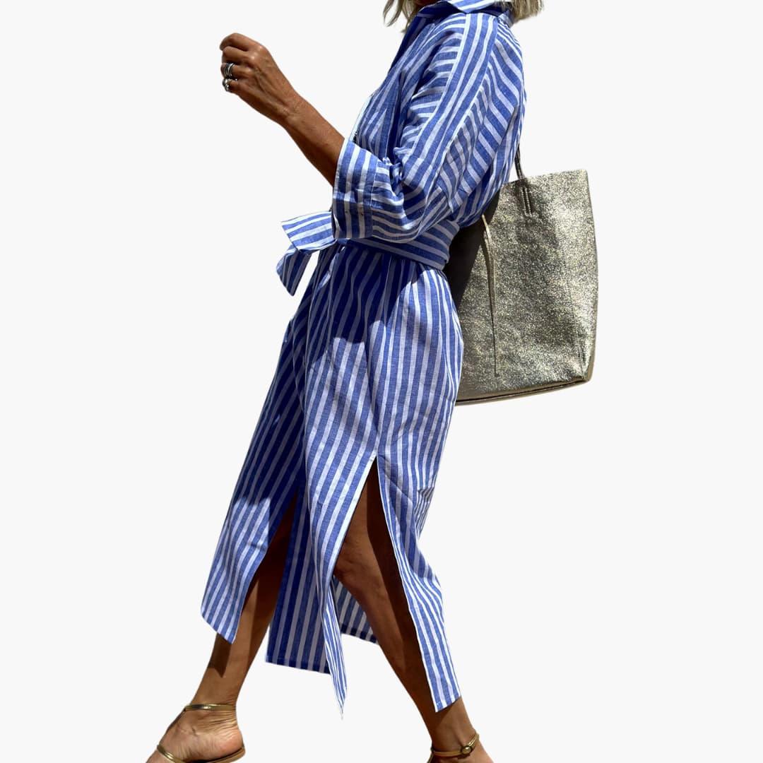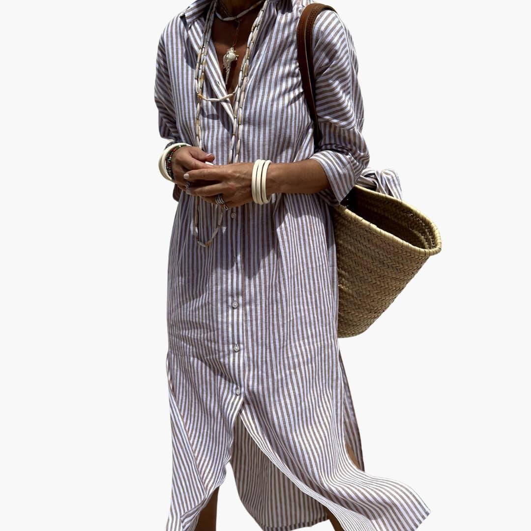 Gestreiftes Hemdblusenkleid für Büro und Freizeit